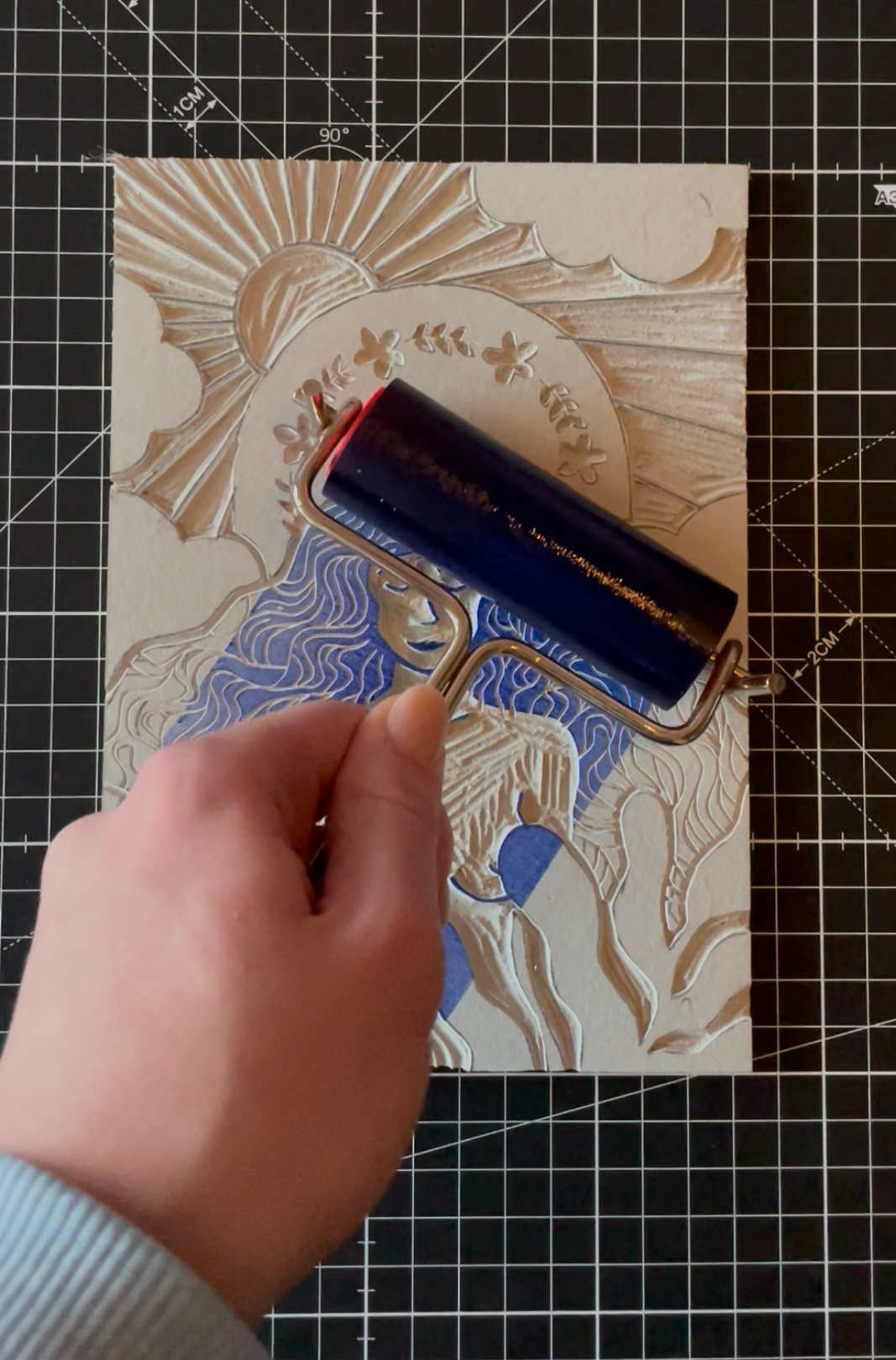 I find great satisfaction in linoprinting – the hands-on process of carving designs into linoleum blocks and watching them come to life on paper or fabric. The act of carving and printing allows me to immerse myself fully in the creative flow, completely losing track of time.